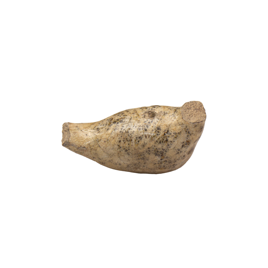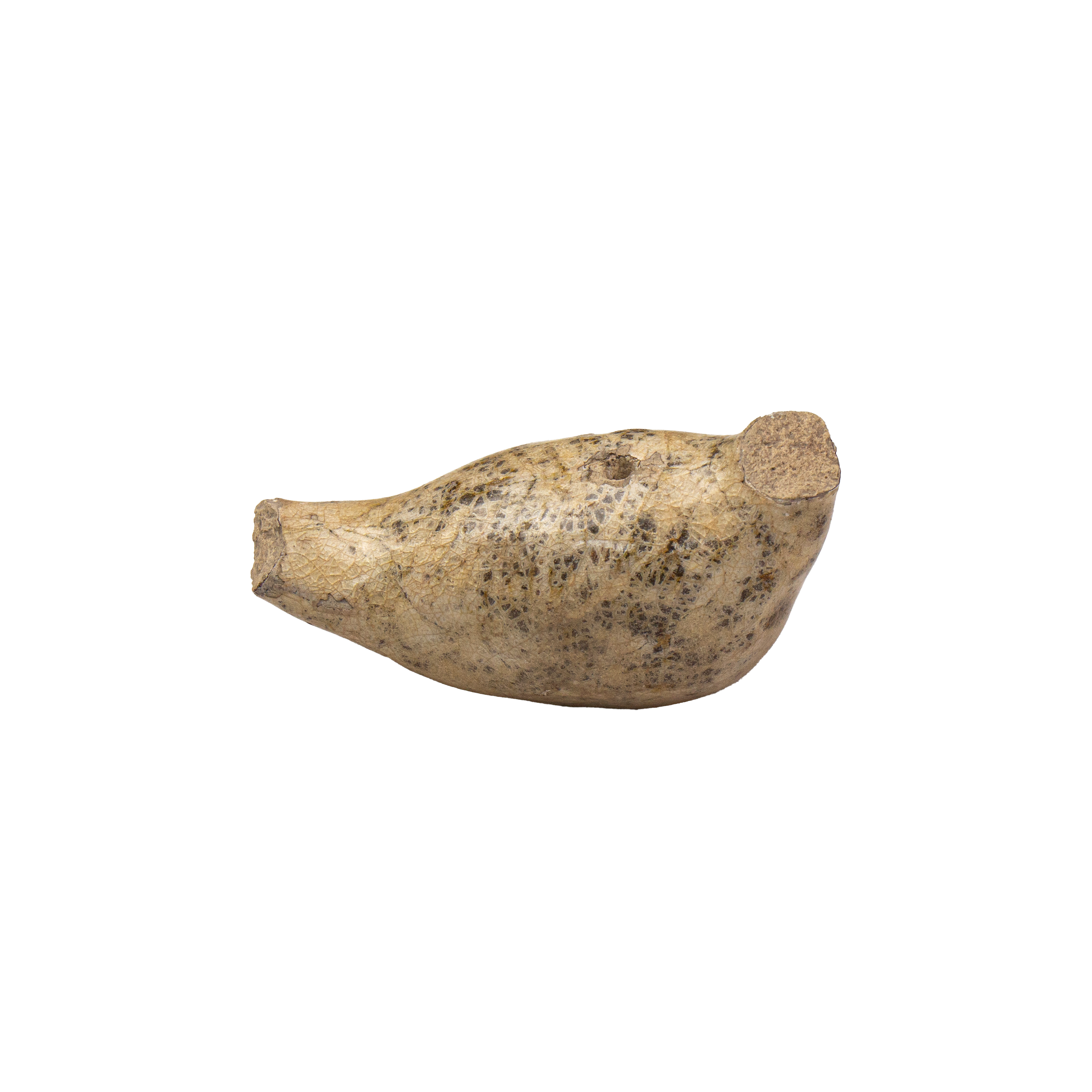 | ลักษณะวัตถุ | รูปตัวสัตว์ ชนิดเขียนลวดลายใต้เคลือบสีดำ อาจเป็นรูปไก่หรือนกทำสำหรับเป็นของเซ่นไหว้หรือของเล่นคล้ายเป็นนกหวีด เนื่องจากพบว่ามีการเจาะรูเล็กจากบริเวณกลางลำตัวด้านบนยาวไปจนถึงส่วนก้น |