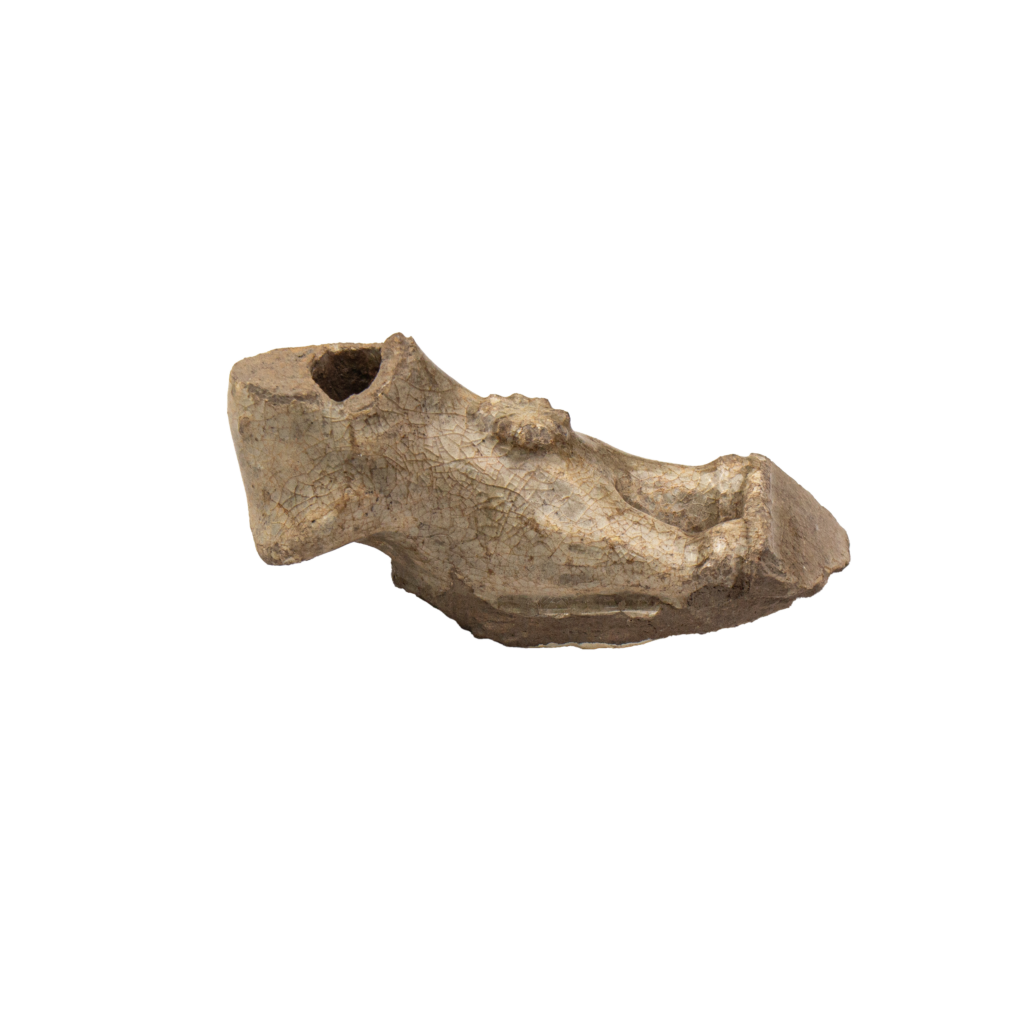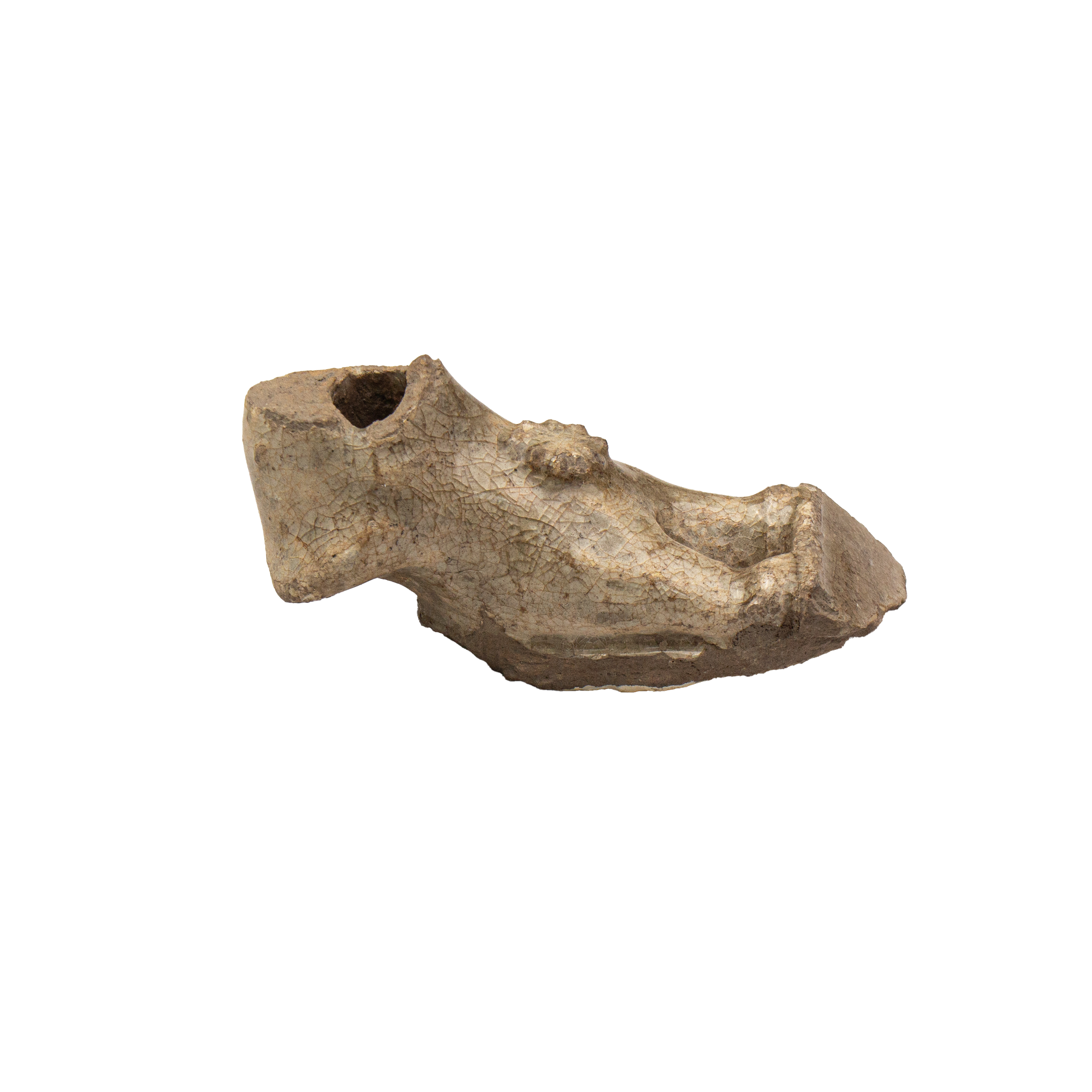 | ลักษณะวัตถุ | ชิ้นส่วนของหัวและสองขาหน้าของช้าง สันนิษฐานว่าเป็นพวยกา หรือชิ้นส่วนประดับตกแต่งอาคารหรือภาชนะ เคลือบเซลาดอนสีออกขาว น้ำเคลือบหนา เรียบ สม่ำเสมอและประณีต แตกรานทั่วทั้งตัว |